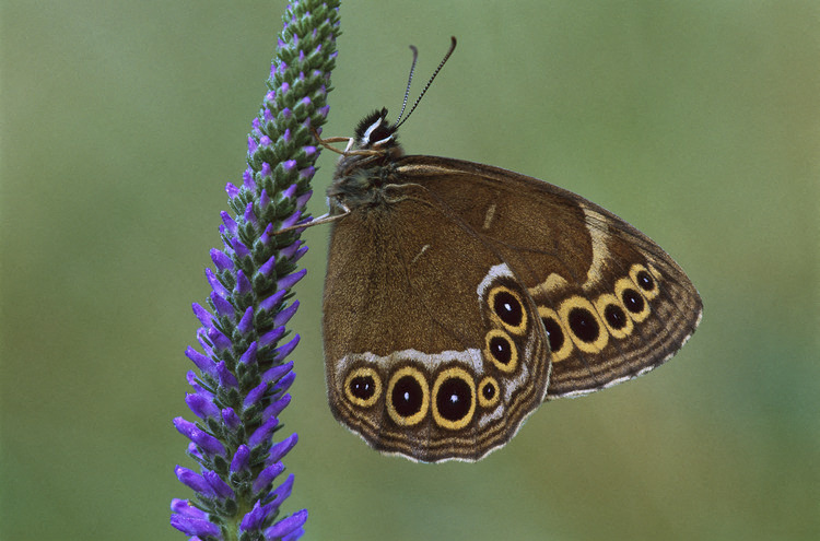 Mesurant 5 à 6cm d’envergure, elle se reconnait à sa couleur brune et ses taches noirâtres cerclées de jaune sur le dessus des ailes. Le dessous des ailes est caractéristique, bordé par une large bande blanche et une série d’ocelles noirs pupillés de blanc et cerclés de jaune. Vous pourrez trouver ce papillon le long des chemins forestiers, des lisières et des clairières. Pour plus d’informations, rendez-vous sur la fiche dédiée.